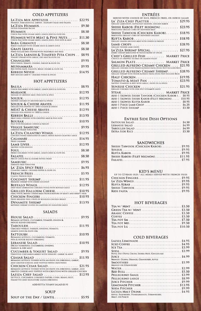 At La Ziza, the culinary experience begins with an array of hot appetizers that tantalize the taste buds. The menu boasts delicious offerings such as: